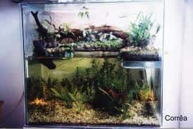 Um aquaterrário para quelônios, deve ter um sistema de filtragem bem eficiente, pois defecam muito na água, pode-se fazer um sistema de escoamento de água, sem a necessidade do uso de filtros.