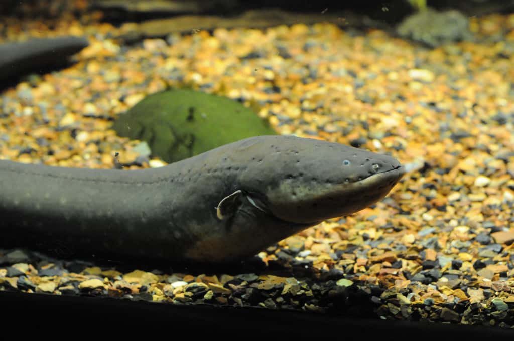 Poraquê é um peixe que emite descargas elétricas para sua defesa e ele habita o Rio Amazonas.